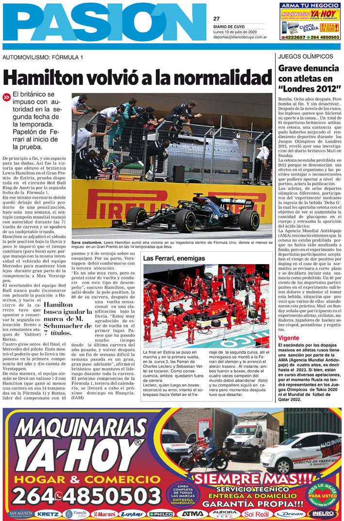 Diario de Cuyo | HOME | Noticias Tapa Pasión 13 de Julio del 2020 Por Redacción Diario de Cuyo 12/07/2020 · 0:00 Escuchar la noticia Escuchar la noticia Your browser doesn’t support HTML5 audio Ver los comentarios ›