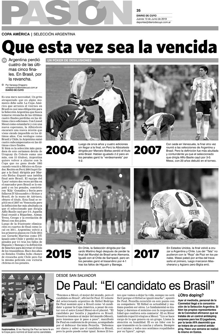 Diario de Cuyo | HOME | Noticias | Tapa Pasión Tapa Pasión 13 de Junio 2019 Por Redacción Diario de Cuyo 12/06/2019 · 0:00 Escuchar la noticia Escuchar la noticia Your browser doesn’t support HTML5 audio Tapa Pasión Ver los comentarios ›