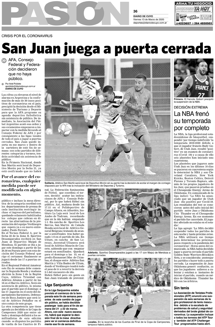 Diario de Cuyo | HOME | Noticias | Tapa Pasión Tapa Pasión 13 de Marzo de 2020 Por Redacción Diario de Cuyo 12/03/2020 · 0:00 Escuchar la noticia Escuchar la noticia Your browser doesn’t support HTML5 audio Tapa Pasión Ver los comentarios ›