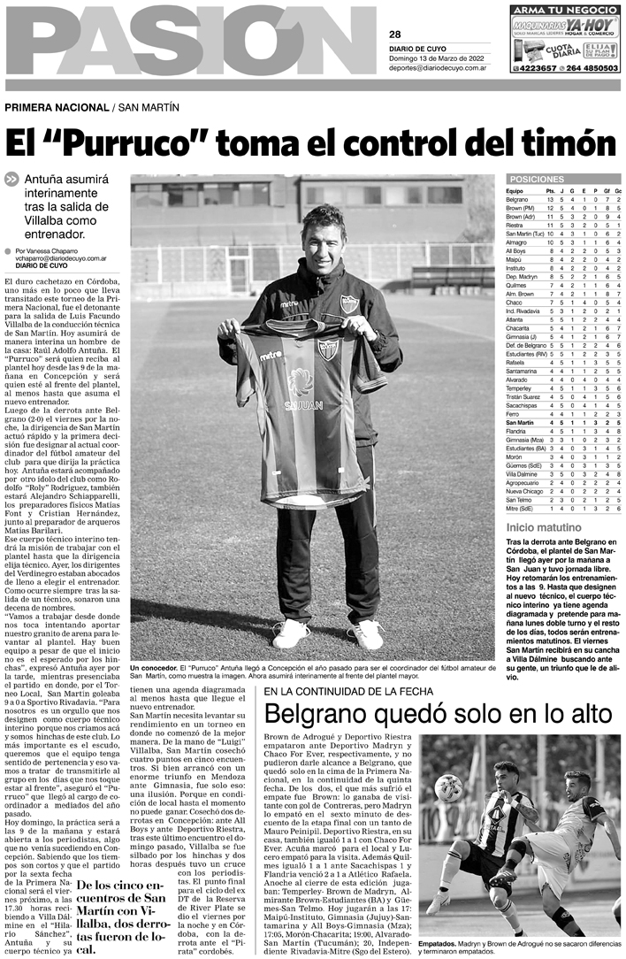 Diario de Cuyo | HOME | Noticias Tapa Pasión 13 de Marzo del 2022 Por Redacción Diario de Cuyo 12/03/2022 · 0:00 Escuchar la noticia Escuchar la noticia Your browser doesn’t support HTML5 audio Ver los comentarios ›