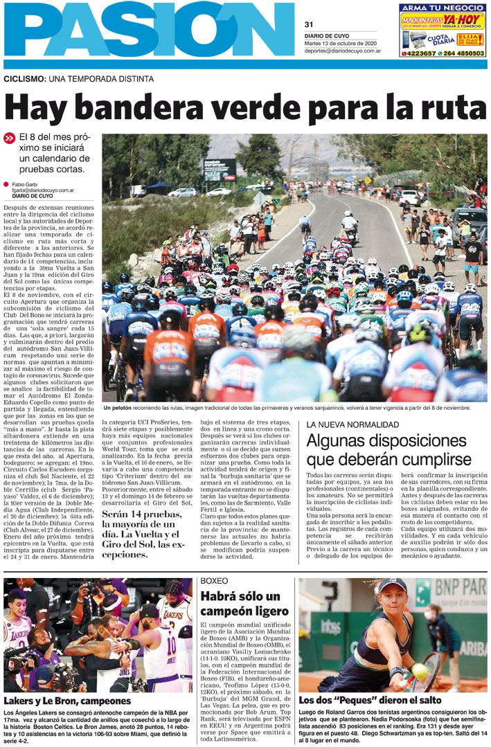 Diario de Cuyo | HOME | Noticias Tapa Pasión 13 de Octubre del 2020 Por Redacción Diario de Cuyo 12/10/2020 · 0:00 Escuchar la noticia Escuchar la noticia Your browser doesn’t support HTML5 audio Ver los comentarios ›
