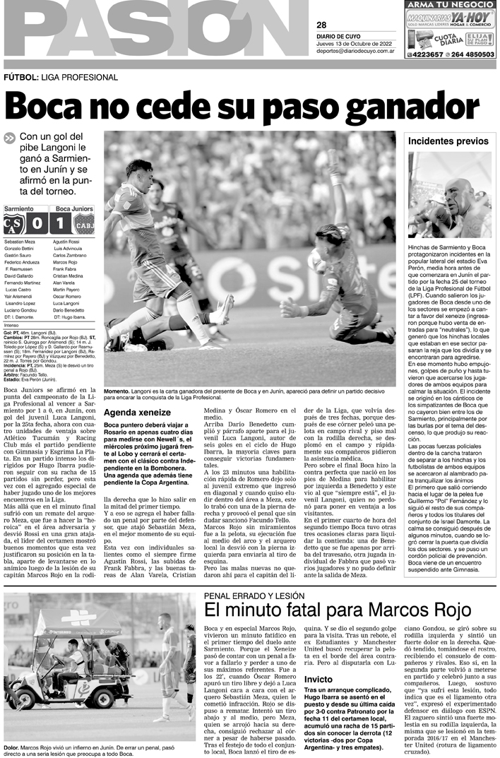Diario de Cuyo | HOME | Noticias Tapa Pasion 13 de Octubre del 2022 Por Redacción Diario de Cuyo 12/10/2022 · 0:00 Escuchar la noticia Escuchar la noticia Your browser doesn’t support HTML5 audio Ver los comentarios ›
