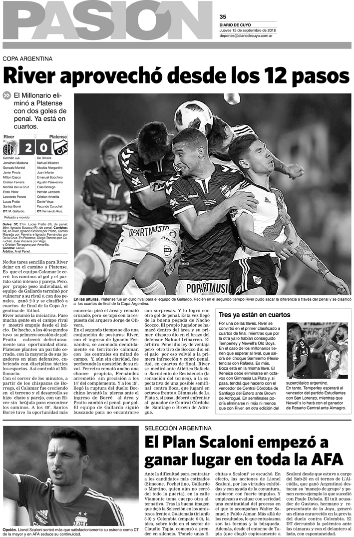 Diario de Cuyo | HOME | Noticias | Tapa Pasión Tapa Pasión 13 de Septiembre 2018 Por Redacción Diario de Cuyo 12/09/2018 · 0:00 Escuchar la noticia Escuchar la noticia Your browser doesn’t support HTML5 audio Tapa Pasión Ver los comentarios ›
