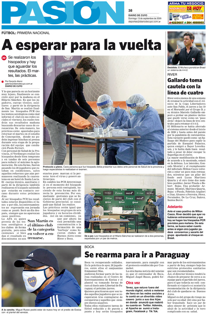 Diario de Cuyo | HOME | Noticias Tapa Pasión 13 de Septiembre del 2020 Por Redacción Diario de Cuyo 12/09/2020 · 0:00 Escuchar la noticia Escuchar la noticia Your browser doesn’t support HTML5 audio Ver los comentarios ›