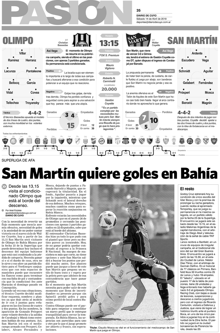 Diario de Cuyo | HOME | Noticias | Tapa Pasión Tapa Pasión 14 de Abril 2018 Por Redacción Diario de Cuyo 13/04/2018 · 0:00 Escuchar la noticia Escuchar la noticia Your browser doesn’t support HTML5 audio Tapa Pasión Ver los comentarios ›