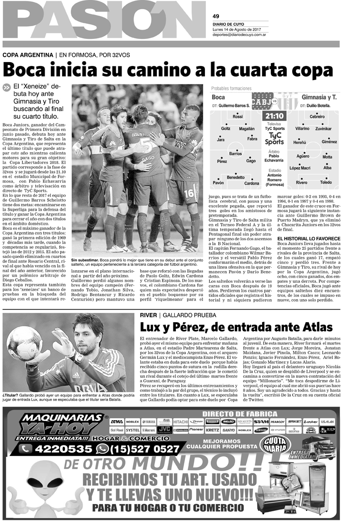 Diario de Cuyo | HOME | Noticias Tapa Pasion 14 de Agosto de 2017 Por Redacción Diario de Cuyo 14/08/2017 · 0:00 Escuchar la noticia Escuchar la noticia Your browser doesn’t support HTML5 audio Ver los comentarios ›