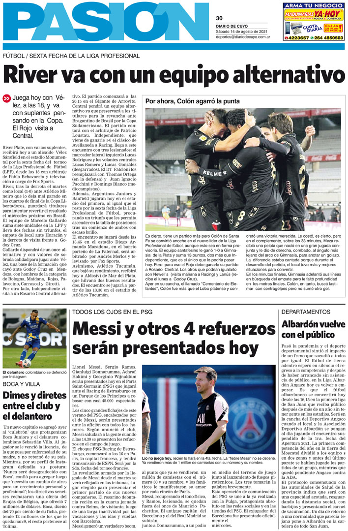Diario de Cuyo | HOME | Noticias Tapa Pasión 14 de Agosto del 2021 Por Redacción Diario de Cuyo 14/08/2021 · 0:00 Escuchar la noticia Escuchar la noticia Your browser doesn’t support HTML5 audio Ver los comentarios ›