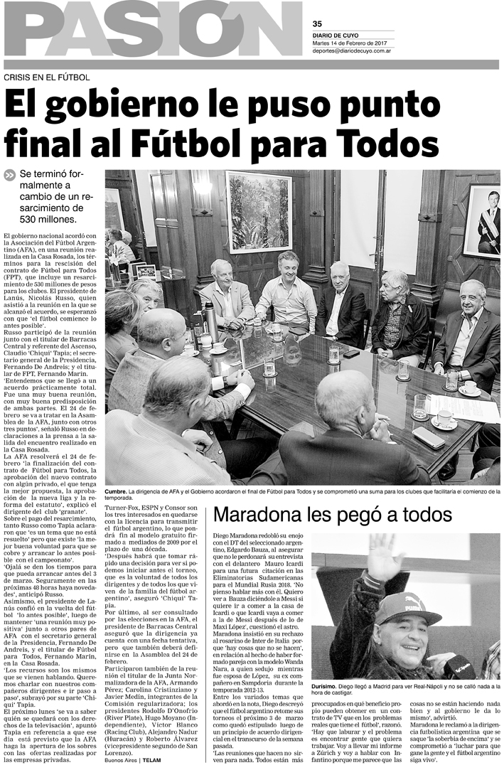 Diario de Cuyo | HOME | Noticias Tapa Pasión 14 de Febrero del 2017 Por Redacción Diario de Cuyo 13/02/2017 · 0:00 Escuchar la noticia Escuchar la noticia Your browser doesn’t support HTML5 audio Ver los comentarios ›