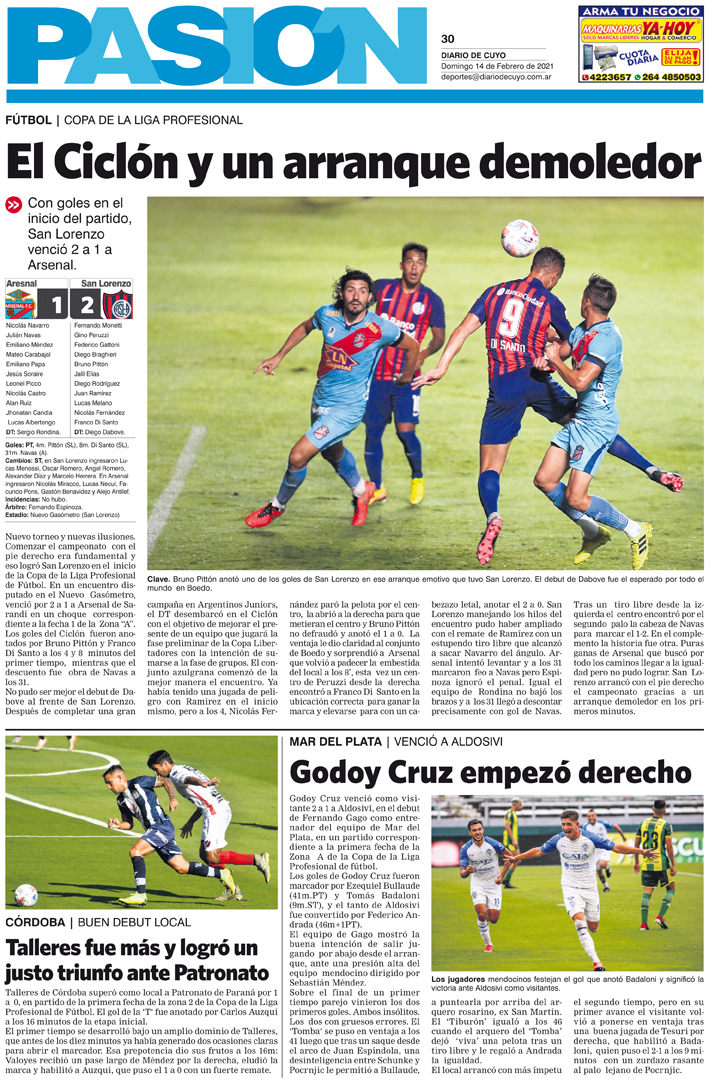 Diario de Cuyo | HOME | Noticias Tapa Pasión 14 de Febrero del 2021 Por Redacción Diario de Cuyo 13/02/2021 · 0:00 Escuchar la noticia Escuchar la noticia Your browser doesn’t support HTML5 audio Ver los comentarios ›