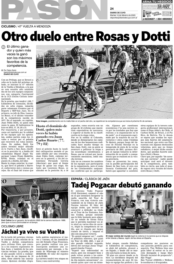 Diario de Cuyo | HOME | Noticias Tapa Pasión 14 de Febrero del 2023 Por Redacción Diario de Cuyo 13/02/2023 · 0:00 Escuchar la noticia Escuchar la noticia Your browser doesn’t support HTML5 audio Ver los comentarios ›