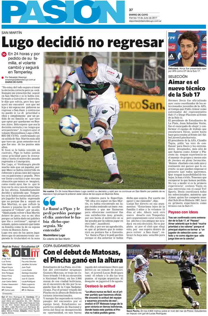 Diario de Cuyo | HOME | Noticias Tapa Pasión 14 de Julio de 2017 Por Redacción Diario de Cuyo 13/07/2017 · 0:00 Escuchar la noticia Escuchar la noticia Your browser doesn’t support HTML5 audio Ver los comentarios ›