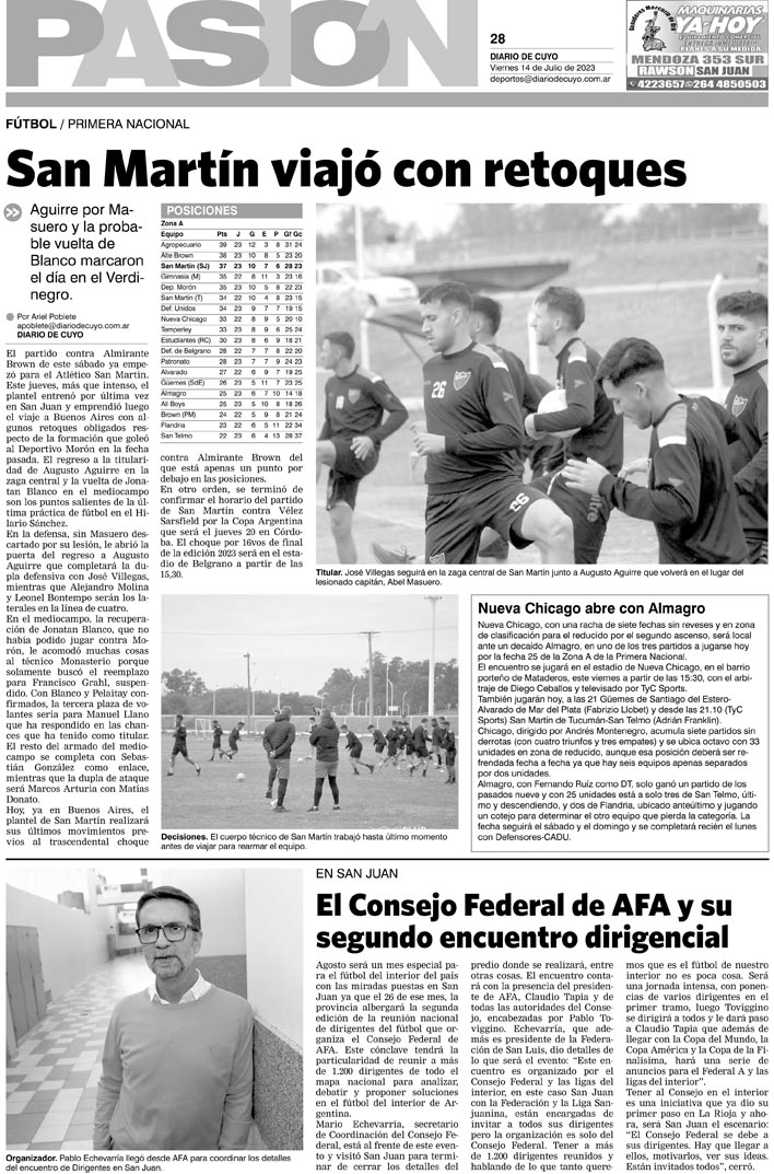 Diario de Cuyo | HOME | Noticias Tapa Pasión 14 de Julio del 2023 Por Redacción Diario de Cuyo 13/07/2023 · 0:00 Escuchar la noticia Escuchar la noticia Your browser doesn’t support HTML5 audio Ver los comentarios ›
