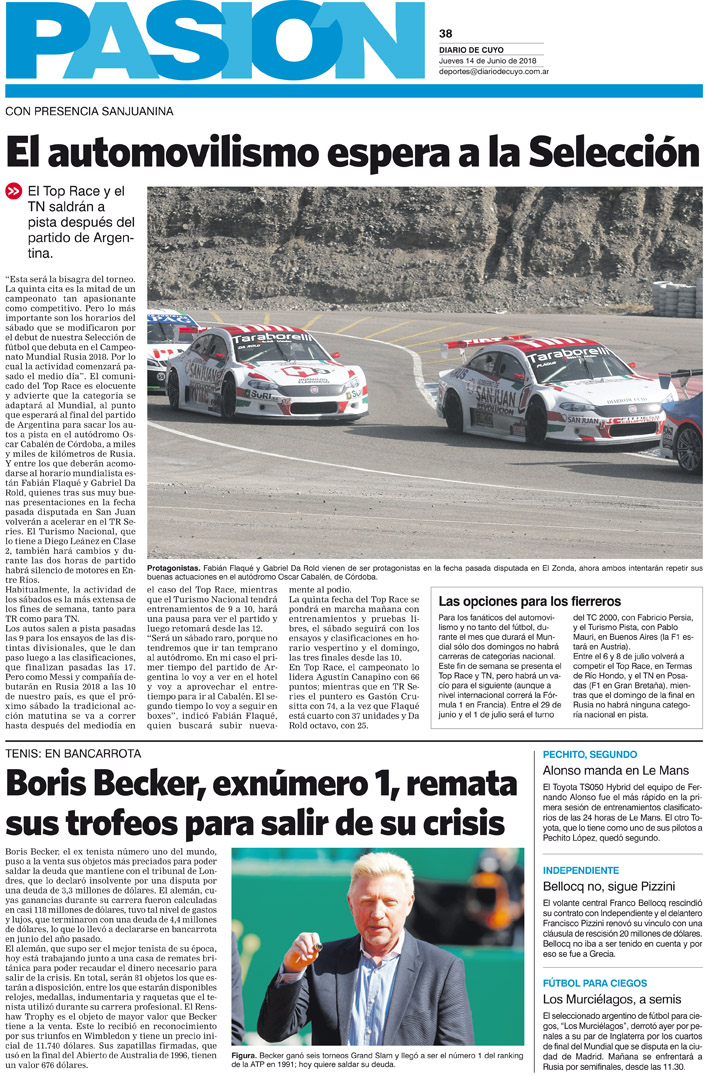 Diario de Cuyo | HOME | Noticias | Tapa Pasión Tapa Pasión 14 de Junio de 2018 Por Redacción Diario de Cuyo 14/06/2018 · 0:00 Escuchar la noticia Escuchar la noticia Your browser doesn’t support HTML5 audio Tapa Pasión Ver los comentarios ›