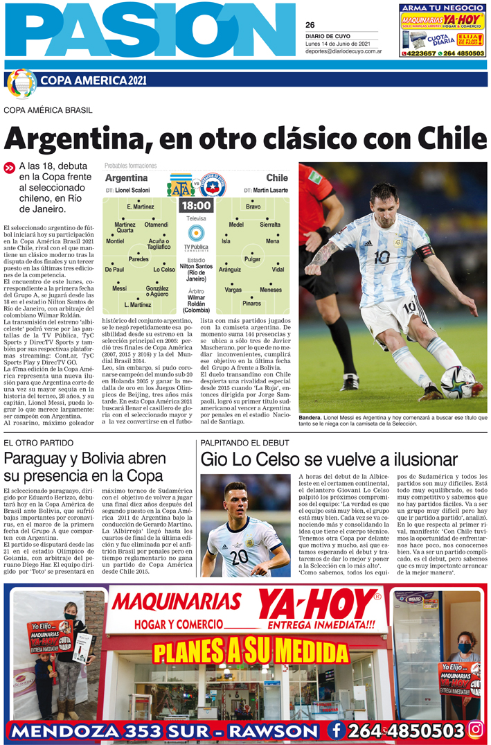 Diario de Cuyo | HOME | Noticias Tapa Pasión 14 de Junio del 2021 Por Redacción Diario de Cuyo 13/06/2021 · 0:00 Escuchar la noticia Escuchar la noticia Your browser doesn’t support HTML5 audio Ver los comentarios ›