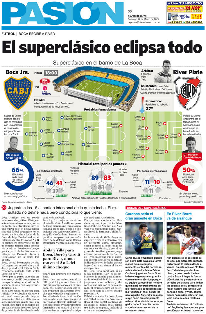 Diario de Cuyo | HOME | Noticias Tapa Pasión 14 de Marzo del 2021 Por Redacción Diario de Cuyo 13/03/2021 · 0:00 Escuchar la noticia Escuchar la noticia Your browser doesn’t support HTML5 audio Ver los comentarios ›