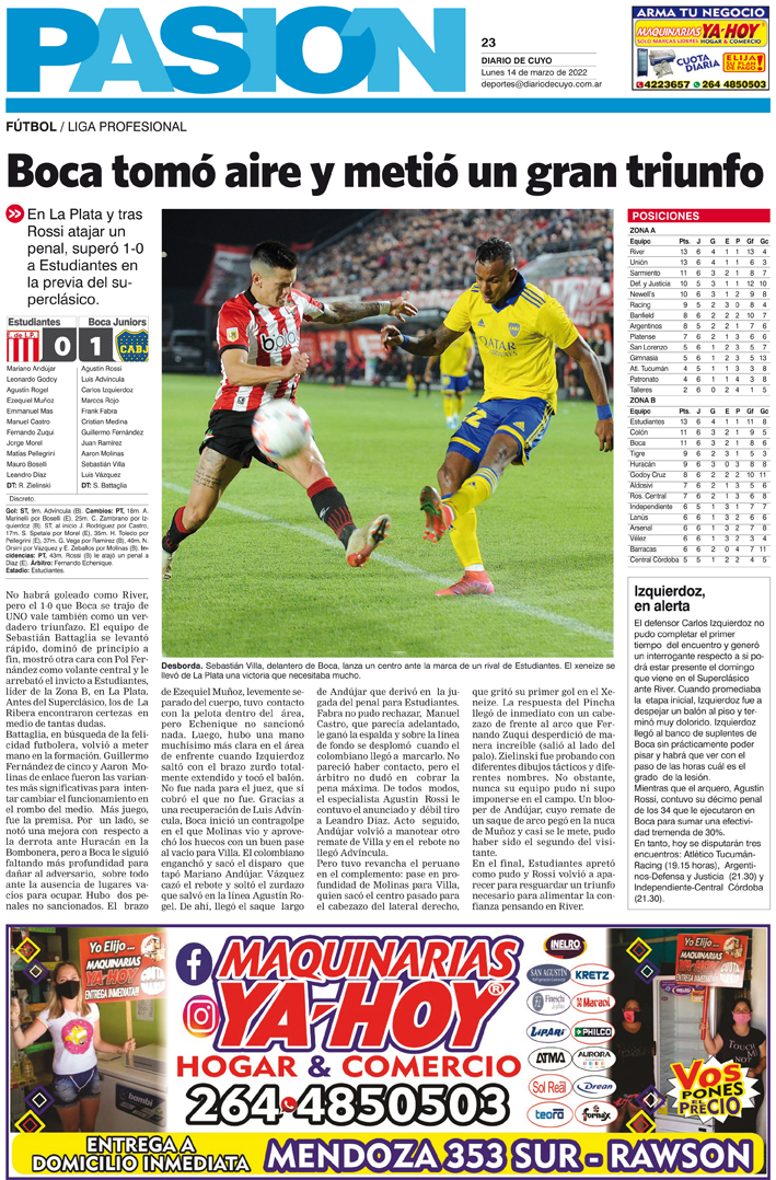 Diario de Cuyo | HOME | Noticias Tapa Pasión 14 de Marzo del 2022 Por Redacción Diario de Cuyo 14/03/2022 · 0:00 Escuchar la noticia Escuchar la noticia Your browser doesn’t support HTML5 audio Ver los comentarios ›
