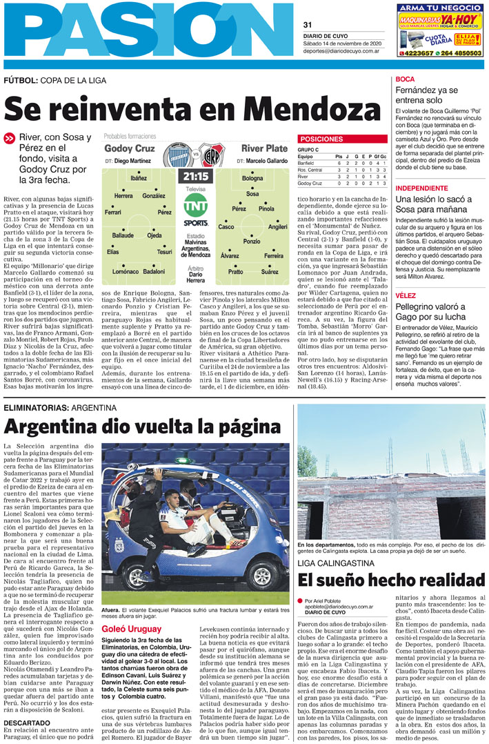 Diario de Cuyo | HOME | Noticias Tapa Pasión 14 de Noviembre del 2020 Por Redacción Diario de Cuyo 13/11/2020 · 0:00 Escuchar la noticia Escuchar la noticia Your browser doesn’t support HTML5 audio Ver los comentarios ›