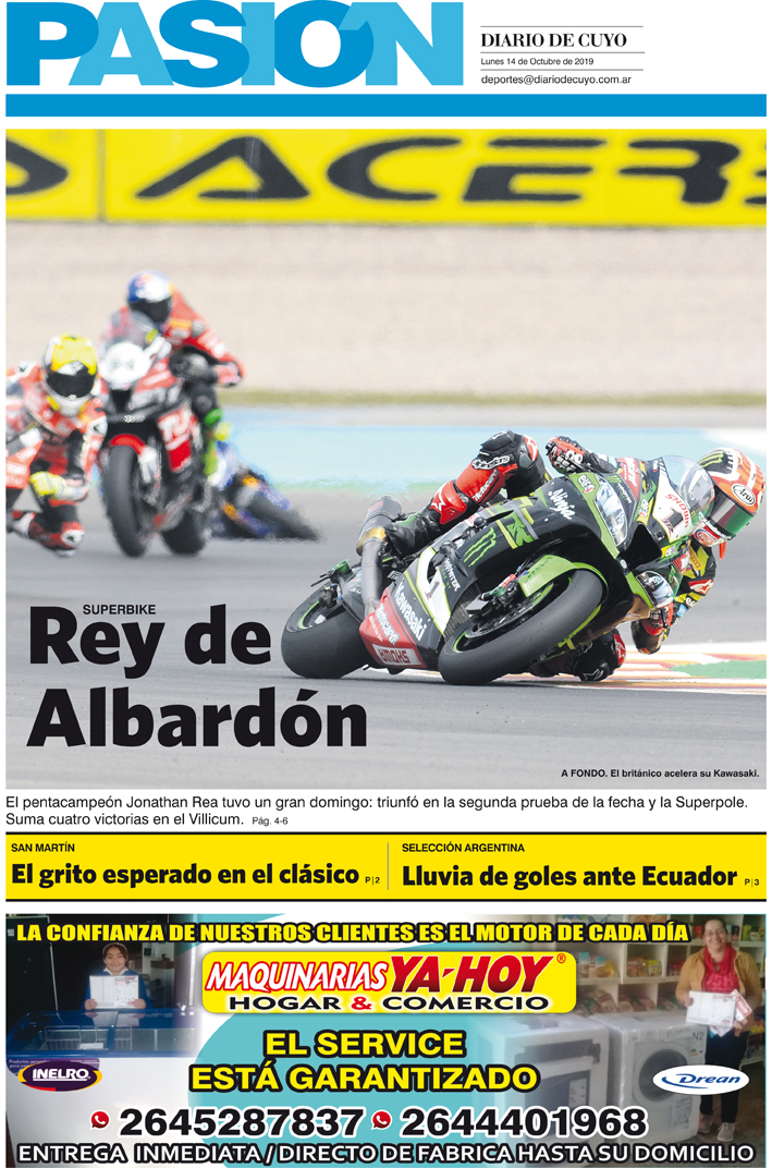 Diario de Cuyo | HOME | Noticias | Tapa Pasión Tapa Pasión 14 de Octubre 2019 Por Redacción Diario de Cuyo 14/10/2019 · 0:00 Escuchar la noticia Escuchar la noticia Your browser doesn’t support HTML5 audio Tapa Pasión Ver los comentarios ›