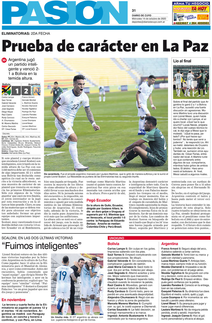 Diario de Cuyo | HOME | Noticias Tapa Pasión 14 de Octubre del 2020 Por Redacción Diario de Cuyo 13/10/2020 · 0:00 Escuchar la noticia Escuchar la noticia Your browser doesn’t support HTML5 audio Ver los comentarios ›