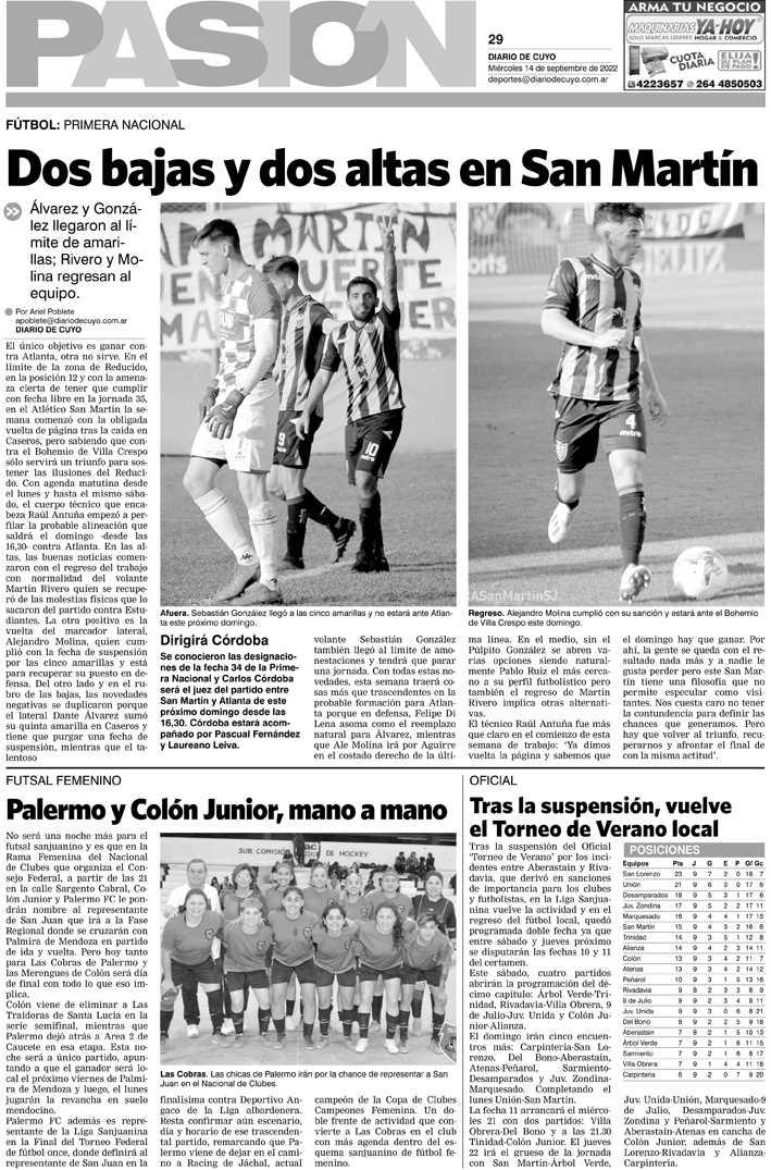 Diario de Cuyo | HOME | Noticias Tapa Pasión 14 de Septiembre del 2022 Por Redacción Diario de Cuyo 13/09/2022 · 0:00 Escuchar la noticia Escuchar la noticia Your browser doesn’t support HTML5 audio Ver los comentarios ›