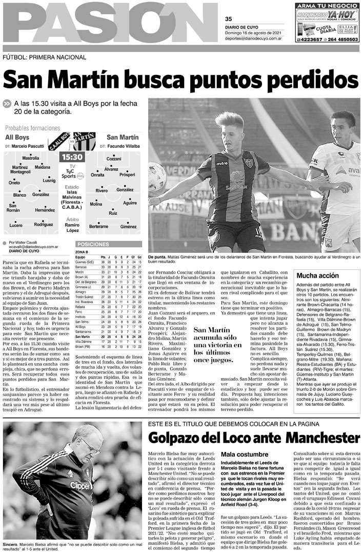 Diario de Cuyo | HOME | Noticias Tapa Pasión 15 de Agosto del 2021 Por Redacción Diario de Cuyo 14/08/2021 · 0:00 Escuchar la noticia Escuchar la noticia Your browser doesn’t support HTML5 audio Ver los comentarios ›