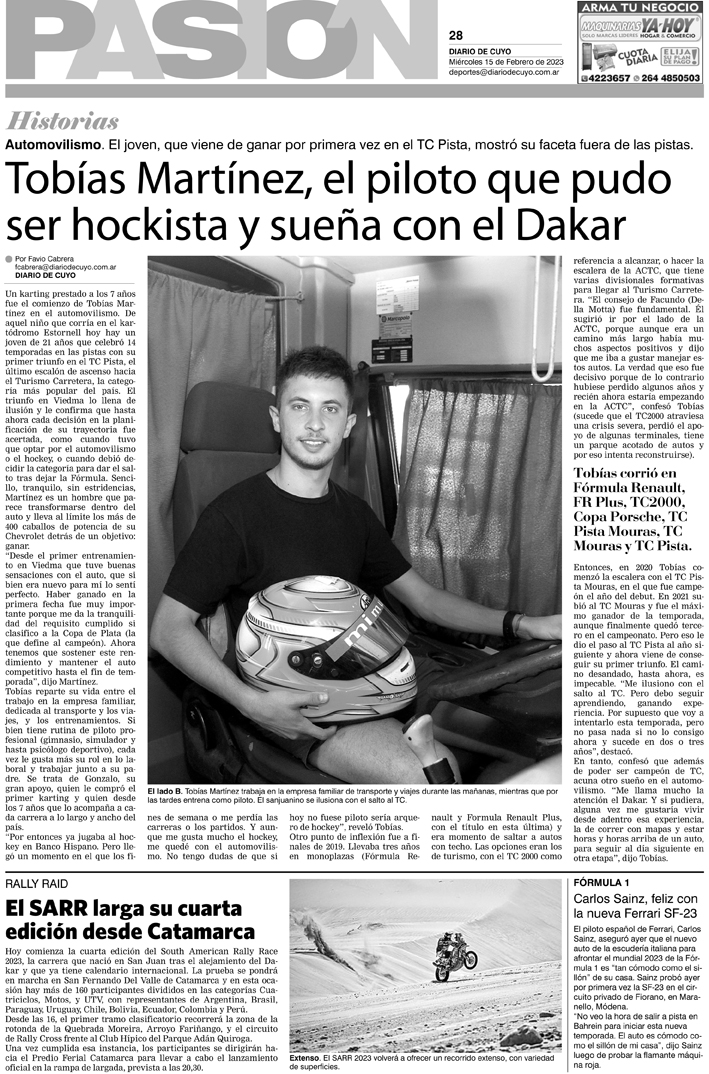 Diario de Cuyo | HOME | Noticias Tapa Pasión 15 de Febrero del 2023 Por Redacción Diario de Cuyo 14/02/2023 · 0:00 Escuchar la noticia Escuchar la noticia Your browser doesn’t support HTML5 audio Ver los comentarios ›