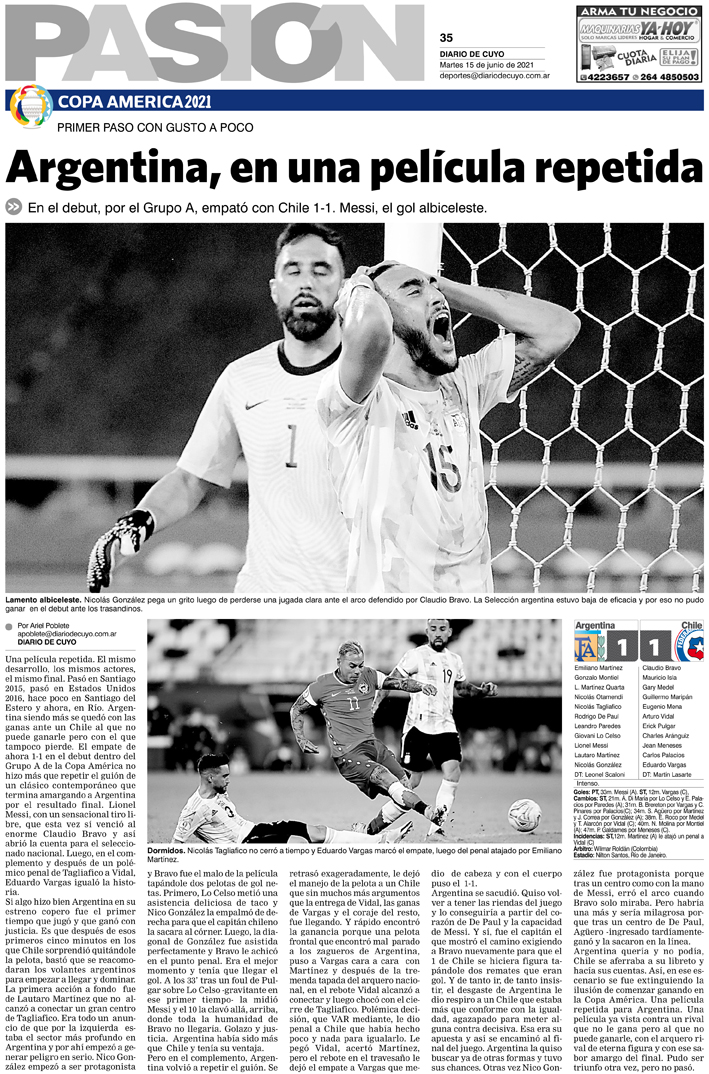 Diario de Cuyo | HOME | Noticias Tapa Pasión 15 de Junio del 2021 Por Redacción Diario de Cuyo 14/06/2021 · 0:00 Escuchar la noticia Escuchar la noticia Your browser doesn’t support HTML5 audio Ver los comentarios ›