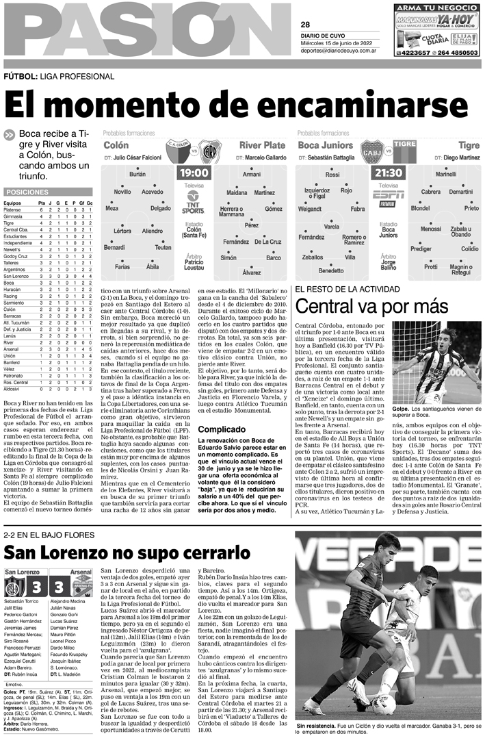 Diario de Cuyo | HOME | Noticias Tapa Pasión 15 de Junio del 2022 Por Redacción Diario de Cuyo 14/06/2022 · 0:00 Escuchar la noticia Escuchar la noticia Your browser doesn’t support HTML5 audio Ver los comentarios ›
