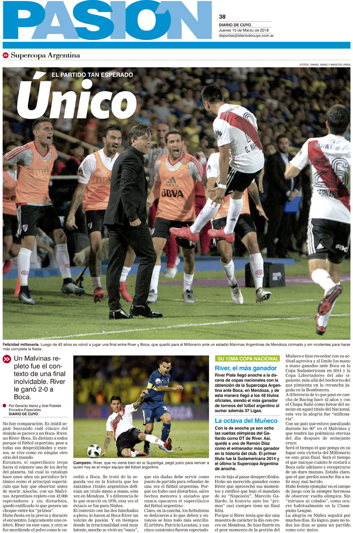 Diario de Cuyo | HOME | Noticias | Tapa Pasión Tapa Pasión 15 de Marzo del 2018 Por Redacción Diario de Cuyo 15/03/2018 · 0:00 Escuchar la noticia Escuchar la noticia Your browser doesn’t support HTML5 audio Tapa Pasión Ver los comentarios ›