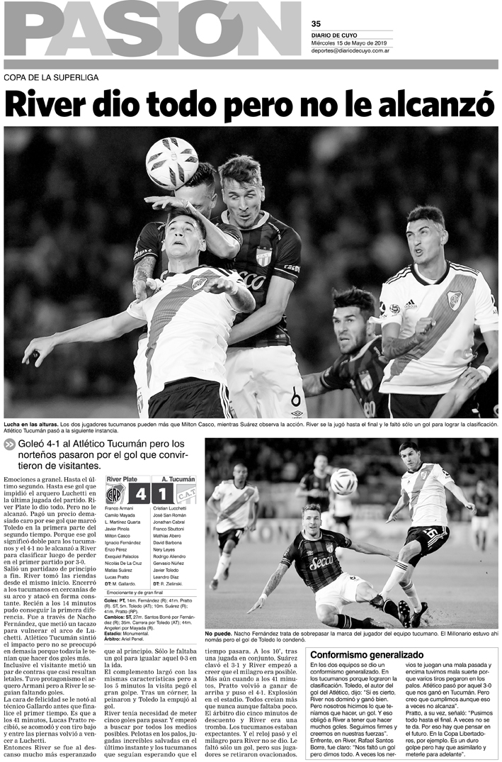 Diario de Cuyo | HOME | Noticias | Tapa Pasión Tapa Pasión 15 de Mayo 2019 Por Redacción Diario de Cuyo 14/05/2019 · 0:00 Escuchar la noticia Escuchar la noticia Your browser doesn’t support HTML5 audio Tapa Pasión Ver los comentarios ›
