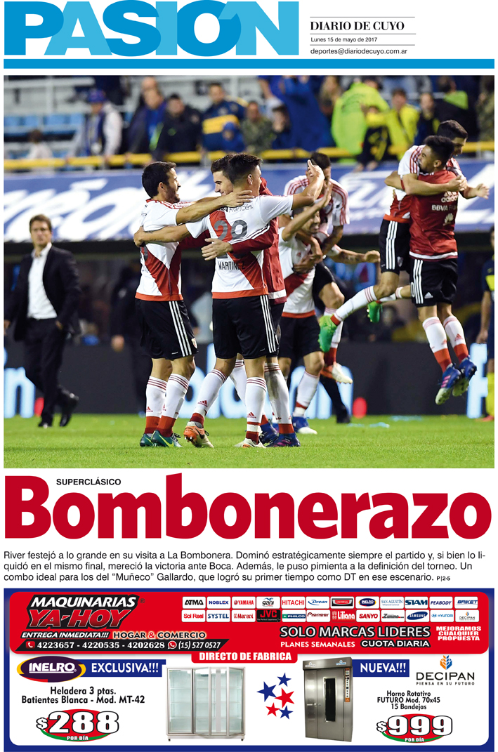 Diario de Cuyo | HOME | Noticias Tapa Pasión 15 de Mayo del 2017 Por Redacción Diario de Cuyo 15/05/2017 · 0:00 Escuchar la noticia Escuchar la noticia Your browser doesn’t support HTML5 audio Ver los comentarios ›