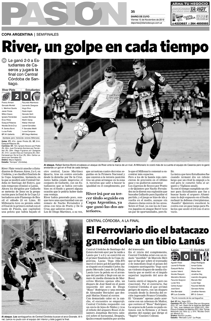 Diario de Cuyo | HOME | Noticias | Tapa Pasión Tapa Pasión 15 de Noviembre 2019 Por Redacción Diario de Cuyo 14/11/2019 · 0:00 Escuchar la noticia Escuchar la noticia Your browser doesn’t support HTML5 audio Tapa Pasión Ver los comentarios ›