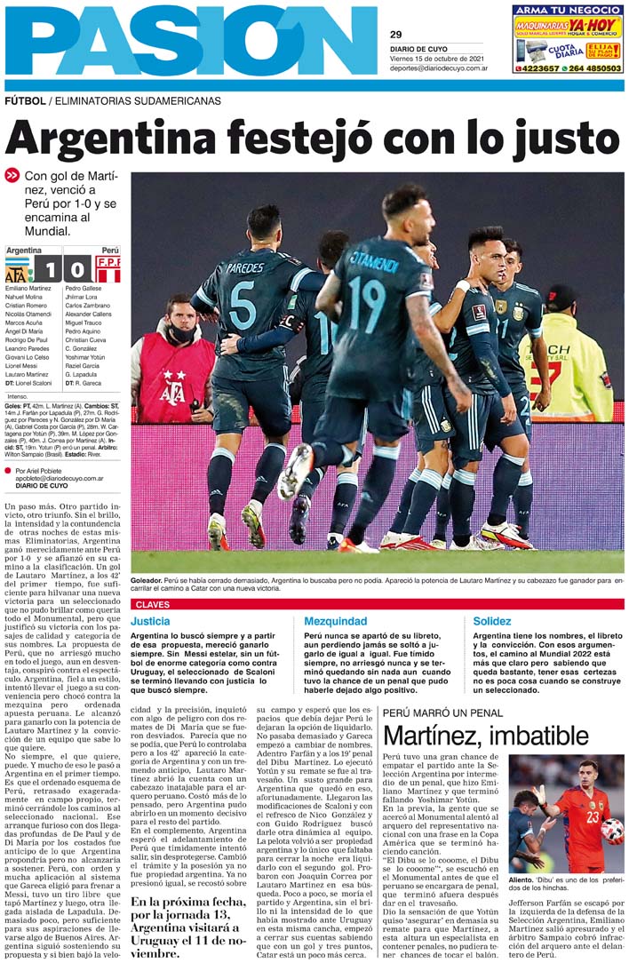 Diario de Cuyo | HOME | Noticias Tapa Pasión 15 de Octubre del 2021 Por Redacción Diario de Cuyo 14/10/2021 · 0:00 Escuchar la noticia Escuchar la noticia Your browser doesn’t support HTML5 audio Ver los comentarios ›