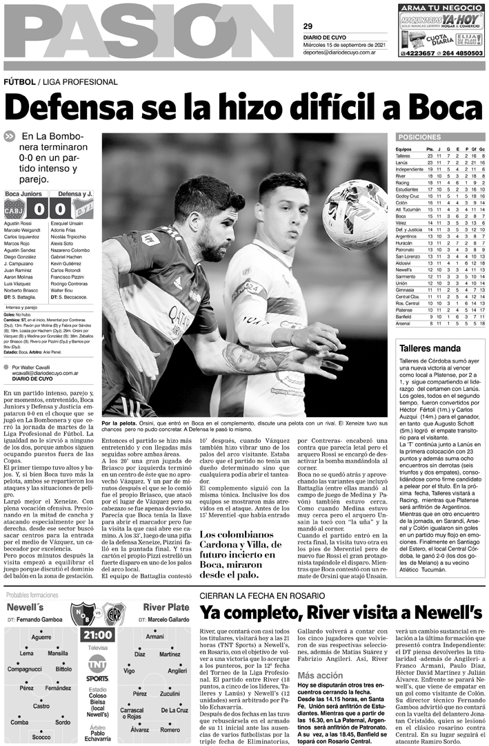 Diario de Cuyo | HOME | Noticias Tapa Pasión 15 de Septiembre del 2021 Por Redacción Diario de Cuyo 14/09/2021 · 0:00 Escuchar la noticia Escuchar la noticia Your browser doesn’t support HTML5 audio Ver los comentarios ›