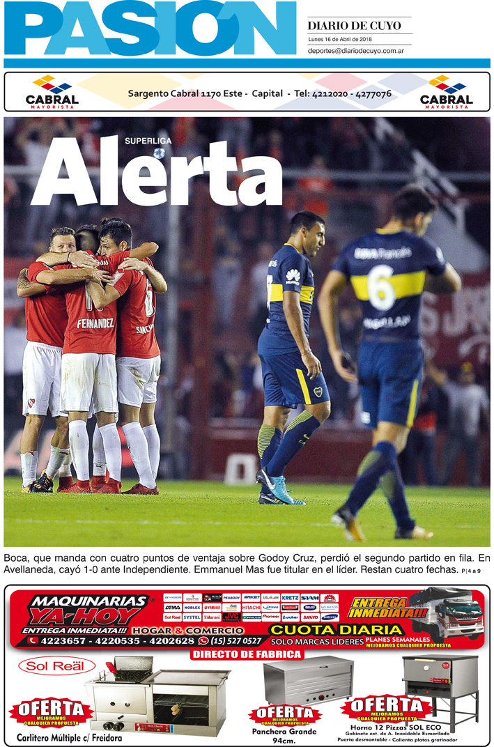 Diario de Cuyo | HOME | Noticias | Tapa Pasión Tapa Pasión 16 de Abril 2018 Por Redacción Diario de Cuyo 16/04/2018 · 0:00 Escuchar la noticia Escuchar la noticia Your browser doesn’t support HTML5 audio Tapa Pasión Ver los comentarios ›