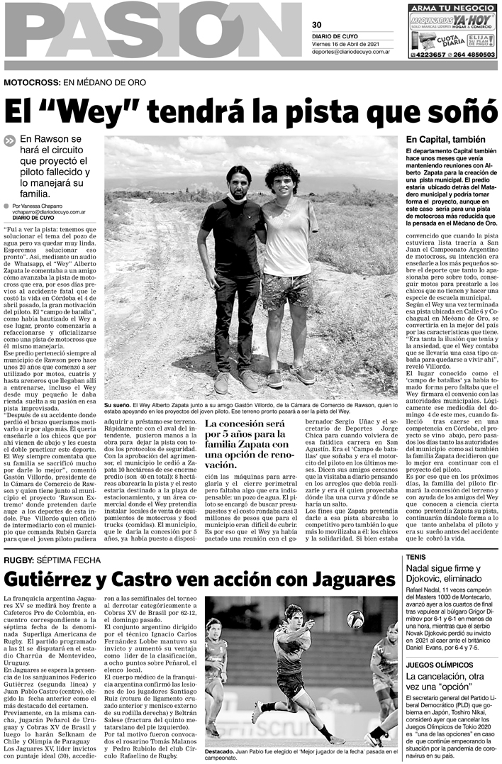 Diario de Cuyo | HOME | Noticias Tapa Pasión 16 de Abril del 2021 Por Redacción Diario de Cuyo 15/04/2021 · 0:00 Escuchar la noticia Escuchar la noticia Your browser doesn’t support HTML5 audio Ver los comentarios ›