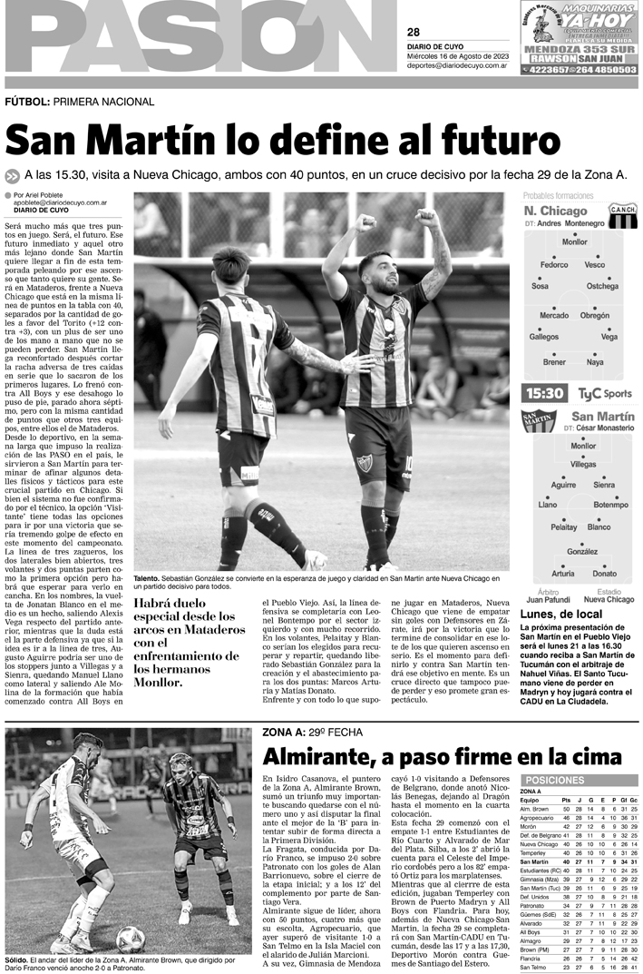 Diario de Cuyo | HOME | Noticias Tapa Pasión 16 de Agosto del 2023 Por Redacción Diario de Cuyo 15/08/2023 · 0:00 Escuchar la noticia Escuchar la noticia Your browser doesn’t support HTML5 audio Ver los comentarios ›