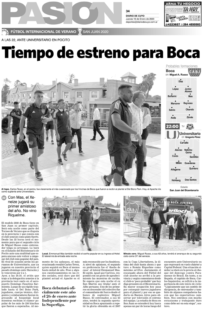 Diario de Cuyo | HOME | Noticias | Tapa Pasión Tapa Pasión 16 de Enero de 2020 Por Redacción Diario de Cuyo 16/01/2020 · 0:00 Escuchar la noticia Escuchar la noticia Your browser doesn’t support HTML5 audio Tapa Pasión Ver los comentarios ›