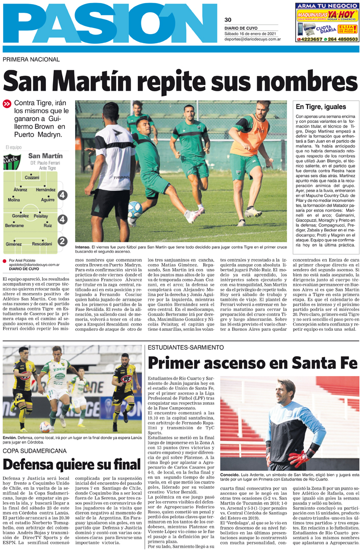 Diario de Cuyo | HOME | Noticias | Tapa Pasión Tapa Pasión 16 de Enero de 2021 Por Redacción Diario de Cuyo 15/01/2021 · 0:00 Escuchar la noticia Escuchar la noticia Your browser doesn’t support HTML5 audio Tapa Pasión Ver los comentarios ›