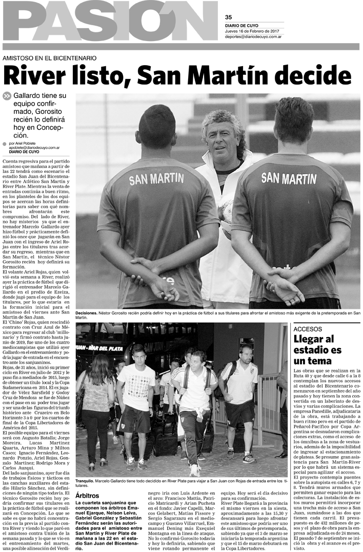 Diario de Cuyo | HOME | Noticias Tapa Pasión 16 de Febrero del 2017 Por Redacción Diario de Cuyo 15/02/2017 · 0:00 Escuchar la noticia Escuchar la noticia Your browser doesn’t support HTML5 audio Ver los comentarios ›