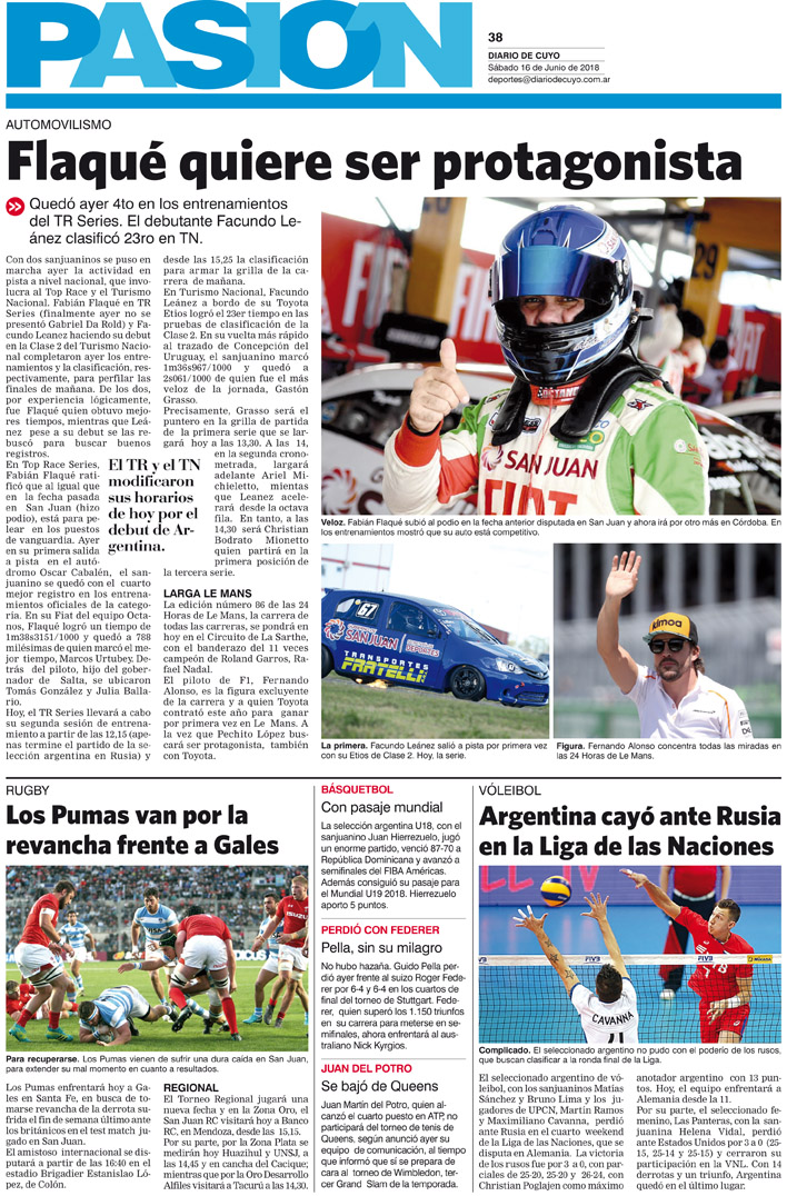 Diario de Cuyo | HOME | Noticias | Tapa Pasión Tapa Pasión 16 de Junio 2018 Por Redacción Diario de Cuyo 15/06/2018 · 0:00 Escuchar la noticia Escuchar la noticia Your browser doesn’t support HTML5 audio Tapa Pasión Ver los comentarios ›