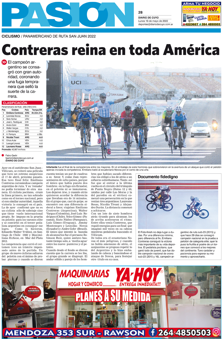 Diario de Cuyo | HOME | Noticias Tapa Pasión 16 de Mayo del 2022 Por Redacción Diario de Cuyo 16/05/2022 · 0:00 Escuchar la noticia Escuchar la noticia Your browser doesn’t support HTML5 audio Ver los comentarios ›