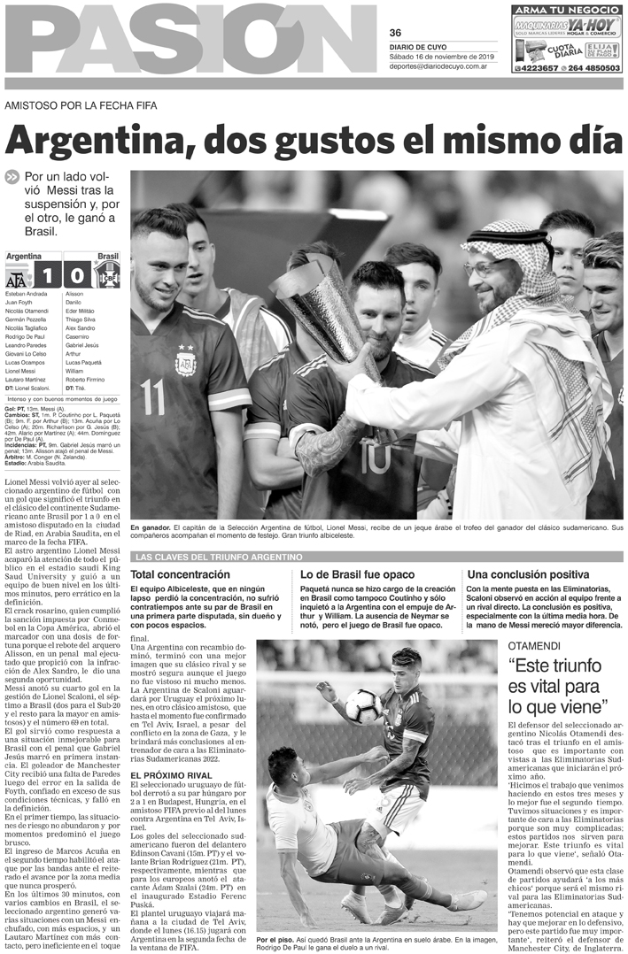 Diario de Cuyo | HOME | Noticias | Tapa Pasión Tapa Pasión 16 de Noviembre 2019 Por Redacción Diario de Cuyo 16/11/2019 · 0:00 Escuchar la noticia Escuchar la noticia Your browser doesn’t support HTML5 audio Tapa Pasión Ver los comentarios ›
