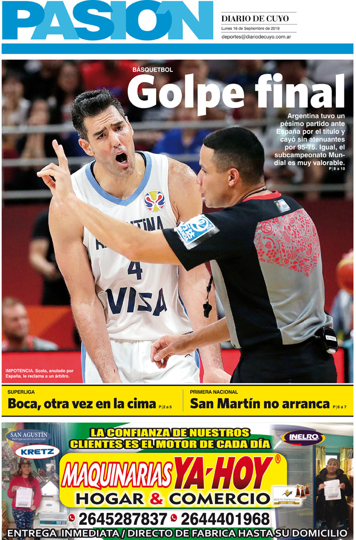 Diario de Cuyo | HOME | Noticias | Tapa Pasión Tapa Pasión 16 de Septiembre 2019 Por Redacción Diario de Cuyo 15/09/2019 · 0:00 Escuchar la noticia Escuchar la noticia Your browser doesn’t support HTML5 audio Tapa Pasión Ver los comentarios ›