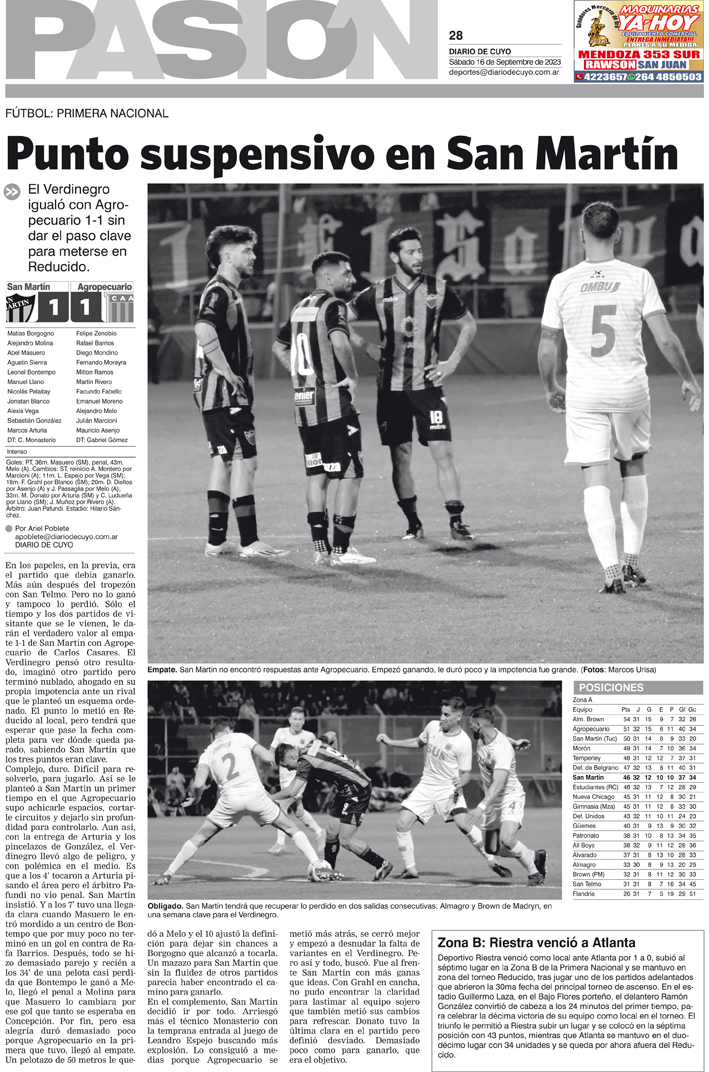 Diario de Cuyo | HOME | Noticias Tapa Pasión 16 de Septiembre de 2023 Por Redacción Diario de Cuyo 16/09/2023 · 0:00 Escuchar la noticia Escuchar la noticia Your browser doesn’t support HTML5 audio Ver los comentarios ›