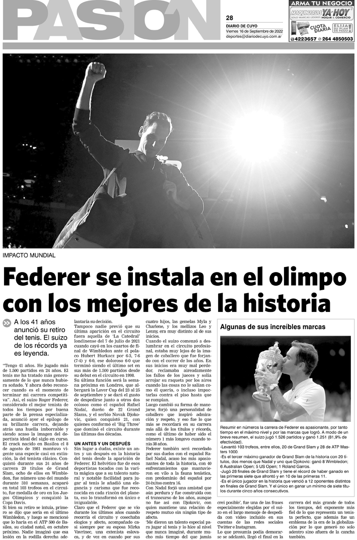 Diario de Cuyo | HOME | Noticias Tapa Pasión 16 de Septiembre del 2022 Por Redacción Diario de Cuyo 15/09/2022 · 0:00 Escuchar la noticia Escuchar la noticia Your browser doesn’t support HTML5 audio Ver los comentarios ›