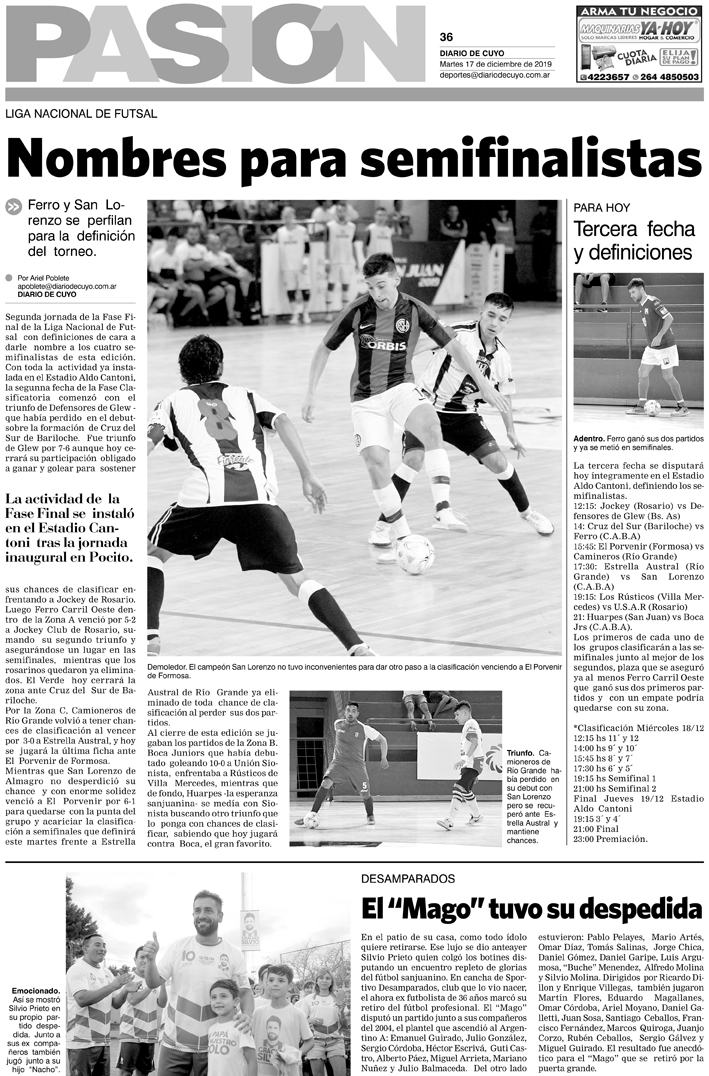 Diario de Cuyo | HOME | Noticias | Tapa Pasión Tapa Pasión 17 de Diciembre 2019 Por Redacción Diario de Cuyo 16/12/2019 · 0:00 Escuchar la noticia Escuchar la noticia Your browser doesn’t support HTML5 audio Tapa Pasión Ver los comentarios ›