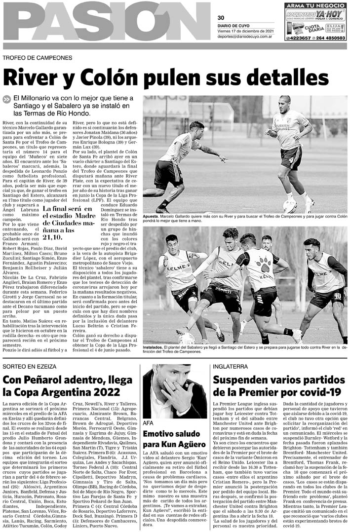 Diario de Cuyo | HOME | Noticias Tapa Pasión 17 de Diciembre del 2021 Por Redacción Diario de Cuyo 16/12/2021 · 0:00 Escuchar la noticia Escuchar la noticia Your browser doesn’t support HTML5 audio Ver los comentarios ›