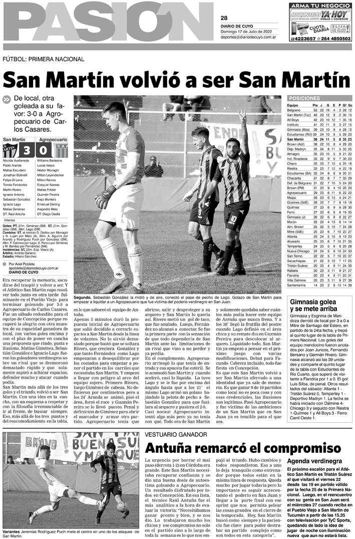 Diario de Cuyo | HOME | Noticias Tapa Pasión 17 de Julio de 2022 Por Redacción Diario de Cuyo 16/07/2022 · 0:00 Escuchar la noticia Escuchar la noticia Your browser doesn’t support HTML5 audio Ver los comentarios ›