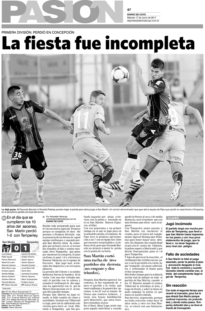 Diario de Cuyo | HOME | Noticias Tapa Pasion 17 de Junio de 2017 Por Redacción Diario de Cuyo 16/06/2017 · 0:00 Escuchar la noticia Escuchar la noticia Your browser doesn’t support HTML5 audio Ver los comentarios ›